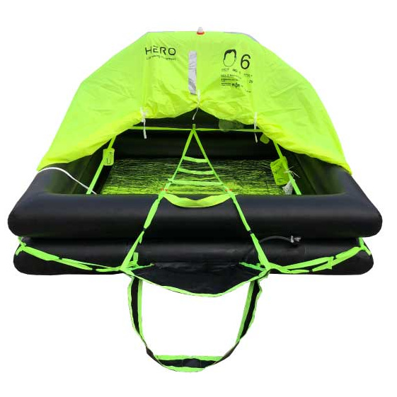 Sie verfügt über einen Isolierboden, ein in Signalfarben ausgestattetes Dach, großen Kenterschutzsäcken, Einstiegshilfe, Reflexstreifen und Außenbeleuchtung. Die Auftriebsschläuche sind aus qualitativ hochwertigen Gummi hergestellt. Die HERO ist in Tasche oder Container erhältlich, und kann mit einem Grab-Bag auch auf SOLAS B Spezifikation aufgerüstet werden.
